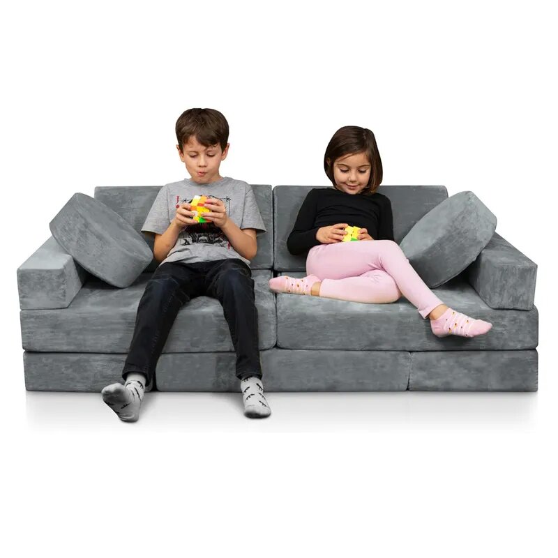 Transform playtime with our Kids Modular Foam Block Sofa, a 14-piece foam sofa designed for endless creativity and fun. Featuring over 30 assembly combinations, it helps children build, explore, and develop problem-solving skills while ensuring safety with certified, child-friendly materials. Easy to clean and conveniently shipped compressed, this modular kids couch is the perfect blend of comfort, durability, and imaginative play.